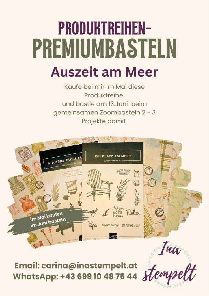 Wenn ihr im Mai die Produktreihe Auszeit am Meer bei mir kauft, dürft ihr euch auf ein Zoombasteln am 13.06.2026 freuen.